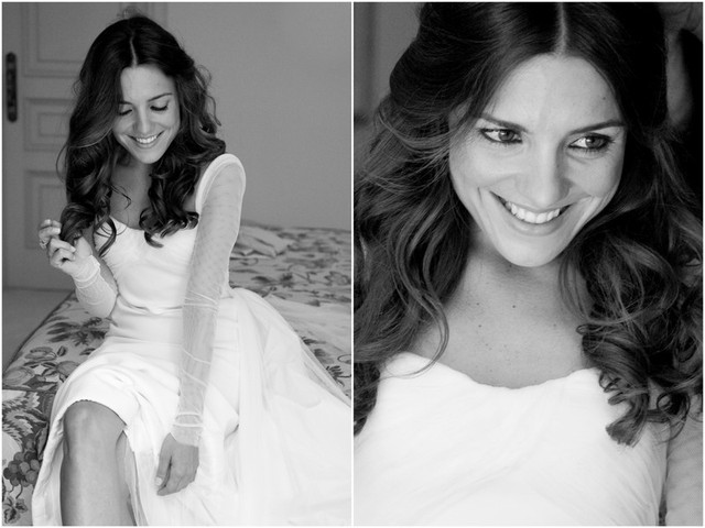 Después de varias pruebas de peinado, Paula decidió dejar su melena suelta con ondas naturales. Para llevar el velo le recogieron algunos mechones de pelo hacia atrás.