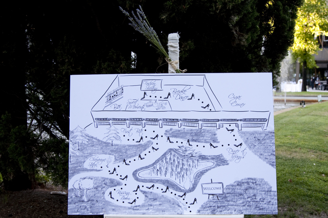 La empresa invitarte http://www.invitarte.es les hizo tanto las invitaciones como este original mapa donde los invitados podían encontrar fácilmente todas las zonas tematizadas para el evento. Sólo tenían que seguir el camino señalado en el mapa. Parece divertido, ¿no?