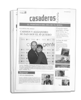 Es el día de tu boda. Acabas de levantarte y mientras desayunas decides leer la prensa. ¿Quieres saber cómo sería la portada de un periódico informando de tu enlace? Sorprende a tus invitados con el periódico del día de tu boda. Ocho páginas que incluyen las siguientes secciones: portada, actualidad (crónica que narra cómo será el enlace), noticias (el secreto mejor guardado: el traje de la novia…), reportaje (Así se conocieron), artículos de opinión (redactados por las personas que tú elijas) y el Comunicado Oficial, en el que los novios se dirigen a sus invitados con un mensaje especial. Sin duda, un regalo para toda la vida