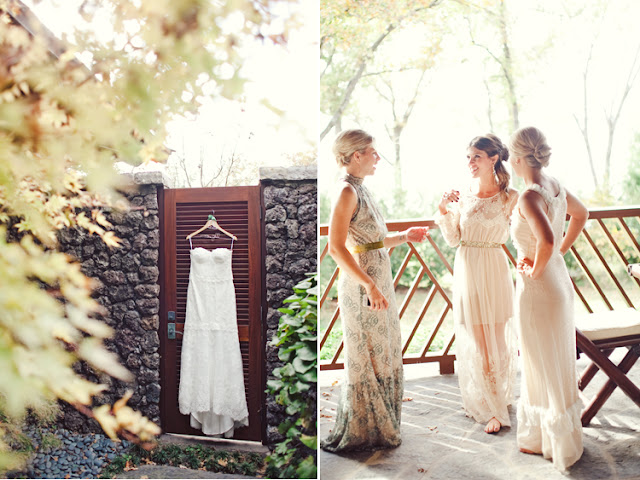 Detalle de las damas de honor con vestidos vintage en color beis. La verdad es que los vestidos me encantan pero no se si me gustaría que mis damas de honor fueran casi del mismo color que yo jiiij