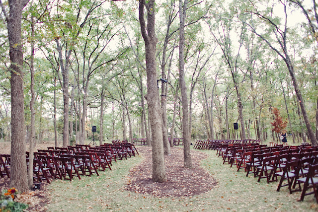 La celebración se celebro en mitad del bosque, con las sillas colocadas entre los arboles. ¿ No queda precioso??? A mi me encanta!