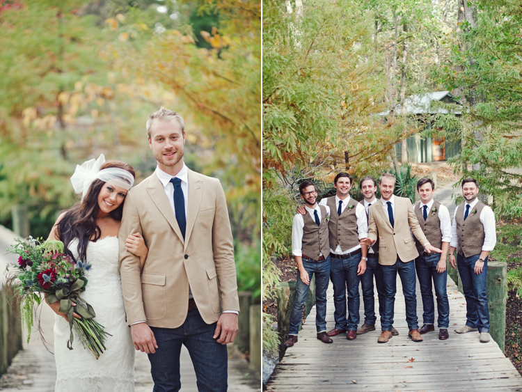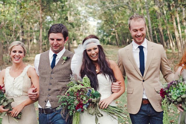 Los novios junto a sus damas y damos de honor. ¿ Que os parecen los ramos? Son unos ramos grandes de flores silvestres que le dan un toque de color a la sobrievdad de los vestidos.Como he dicho antes me encantan los trajes de inspiración vintage que llevan las damas de honor.
