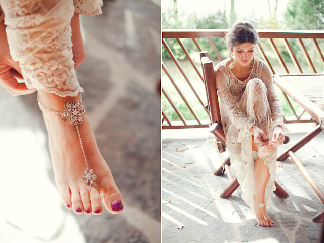 Aquí podemos ver a la novia terminandose de arreglar. Lleva el velo a modo de turbante con un