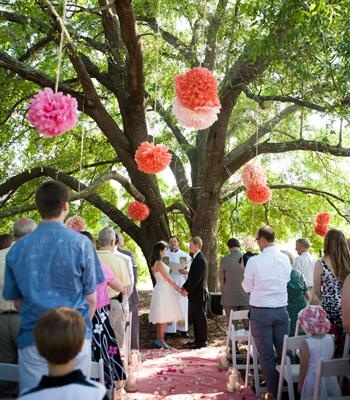 ¿¿Que os parecería decorar vuestra boda con pompones??? No solo se puede decorar el techo, se pueden decorar las sillas, el altar de la boda, las mesas….