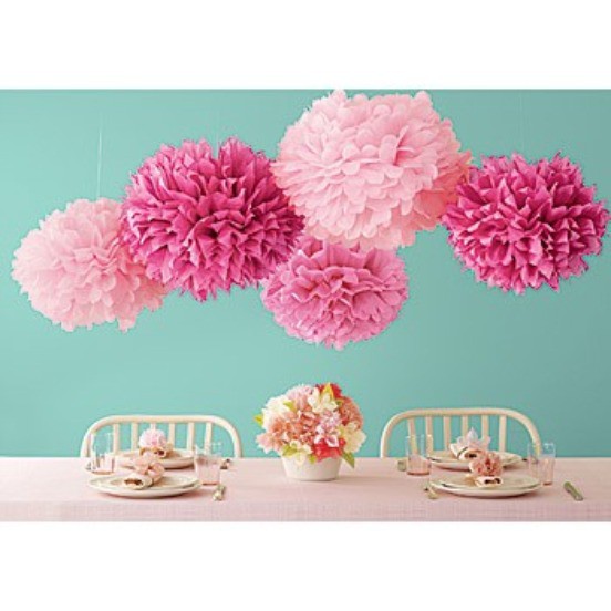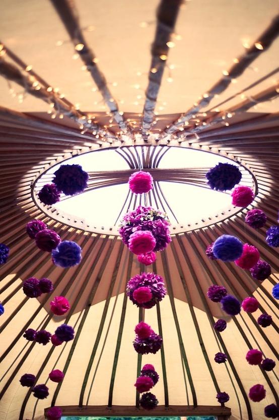 te da muchisimas posibilidades. Desde pompones para colgar del techo hasta flores de pompones, cortinas de pompones, corazones, photocall….Entra en su web, no tiene desperdicio. Aquuí os dejo un par de cosas que hacen en http://www.thepompomshop.com/