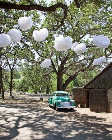 ¿¿Que os parecería decorar vuestra boda con pompones??? No solo se puede decorar el techo, se pueden decorar las sillas, el altar de la boda, las mesas….