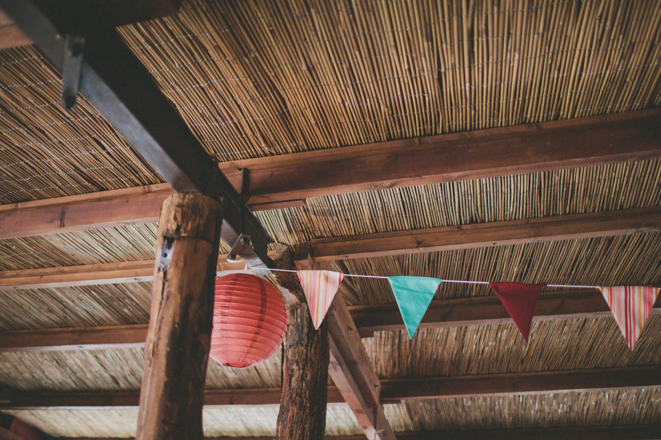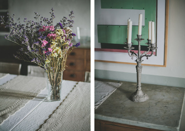 Flores silvestres de diferentes colores para una habitación, queda precioso, ¿verdad? El detalle del candelabro antiguo también queda muy bonito y las guirnaldas decorativas me encantan! Podéis copiar la idea con recortes de tela y cosiendo un cordel. Muy fácil.