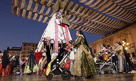 Cada 17 y 18 de marzo se realiza la ofrenda a la patrona de Valencia, la Virgen De Los Desamparados. En la plaza de la catedral se coloca una estructura de madera con el busto de la patrona y todas las comisiones acuden en ofrenda a llevarle flores que son colocadas de manera estratégica por la estructura dejando finalmente un manto de flores muy bonito. Para muchísima gente es muy emocionante y le piden deseos a la entrada a la plaza. Cada año el manto de flores tiene un dibujo diferente.