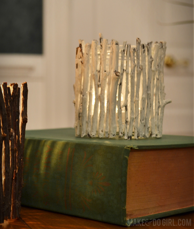 Como cada sábado os traigo un tutorial muy fácil para vuestra boda o para decorar algún rincón de vuestra casa.  Se trata de una lampara hecha con un tarro de cristal, ramas secas y una vela. Este tutorial lo he encontado en la web http://makeanddogirl.com