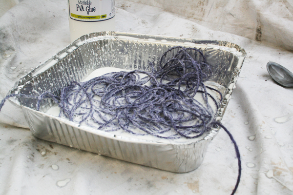 Cuando ya tengamos la mezcla hecha introducimos la cuerda o la lana dentro de la bandeja para que se pringue totalmente.