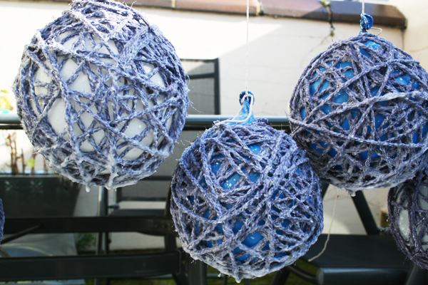 Cuando se haya secado la cuerda volverá al color inicial. Entonces será el momento de pinchar los globos y extraerlos con cuidado para que no queden restos dentro de la esfera.