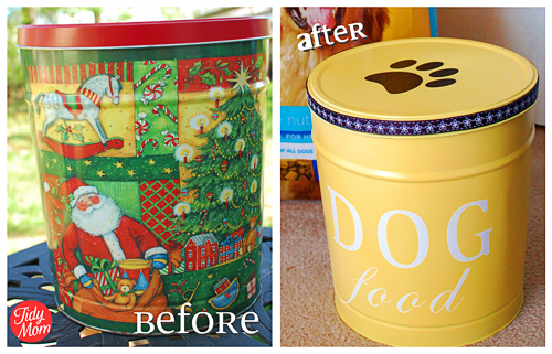 El DIY de hoy es sencillo y sirve para guardar la comida de nuestras mascotas y que sea un elemento decorativo más de la casa ya que en muchas ocasiones las bolsas de la comida son enormes y feas y nunca sabemos donde dejarlas. Pues con este DIY ya sabréis donde poner la comida de vuestro perro/ gato/ pajaro…..