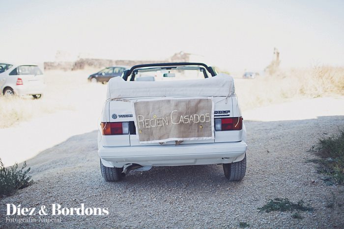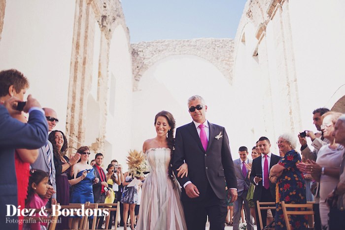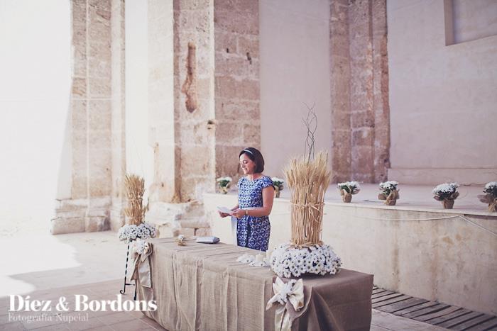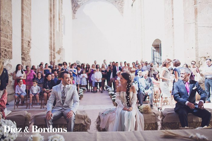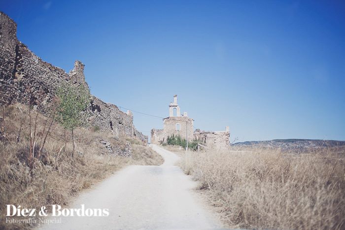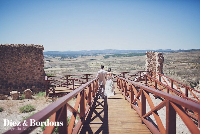 Esta es otra cuestión que teníamos muy clara, queríamos una Boda Campestre sencilla. Mi marido y yo veraneamos en unos pueblos de la provincia de Cuenca, casualidades de la vida el pueblo de mi padre y el del suyo son pueblos vecinos, por eso decidimos que nos casábamos allí, exactamente en el Castillo de Moya (Provincia de Cuenca) una antigua fortaleza medieval en ruinas con mucho historia y encanto en lo alto de una montaña. Para la ceremonia escogimos un lugar concreto que era el antiguo monasterio derruido, puesto que solo quedan en pie las paredes y alguna parte de las cúpulas, que se utiliza de vez en cuando como sala de exposiciones o teatro.