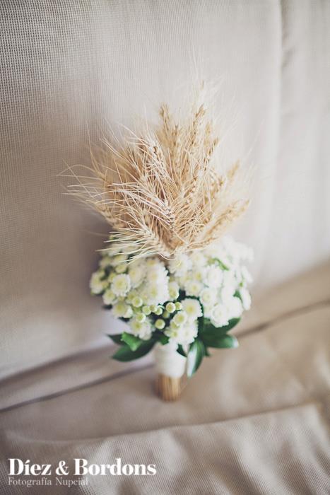 Mi ramo de flores como la decoración floral de toda mi boda la diseñé yo misma, solo tuve que quedar con Gloria que tiene una Floristería en Mira, provincia de Cuenca (http://www.floristeriagloria.com/), ella se citó conmigo aquí en Valencia, le dibuje un boceto en papel de lo que quería y Gloria captó al momento lo que deseaba, quería margaritas miniatura, trigo y tela arpillera muy sencillo, que combinara con toda la decoración de mi boda.