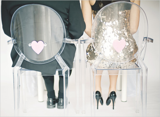 Ahora le toca el turno a las sillas transparentes. Este tipo de sillas esta últimamente muy de moda y si pensáis que pueden quedar sosillas les podéis añadir una cinta con un corazón en las sillas de los novios.