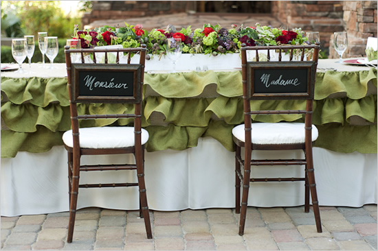Si optáis por una boda más rústica podéis escoger sillas en tonos marrones y colocar en el respaldo una pizarrita con el nombre de los novios.