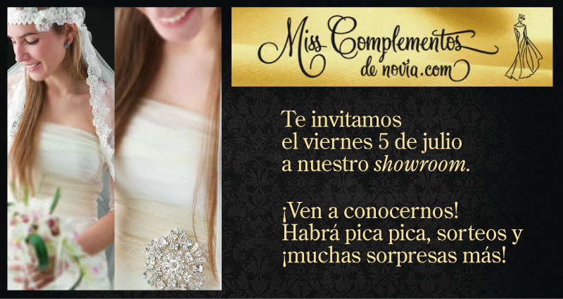 La tienda online www.misscomplementosdenovia.com organiza un gran showroom este viernes 5 de julio en Alella ( Barcelona) , para que podáis conocer de primera mano todos los productos que venden en su web.