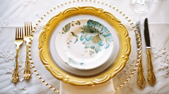 Una de las cosas importantes en la decoración de las mesas de bodas son las vajillas. Por supuesto, el salón es el que pone la vajilla, pero posiblemente tengan varios modelos para enseñaros y que podáis elegir, así que aprovechad para preguntar y elegir porque LAS VAJILLAS TAMBIÉN IMPORTAN!. Una buena combinación con el resto de la decoración puede hacer que las mesas sean espectaculares. Yo indagando por la web he escogido un par de imágenes de vajillas que me han gustado y pueden serviros de inspiradoras para vosotros.