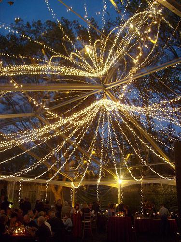 No me digáis que no habéis pensado nunca lo bonito que es un cielo estrellado en una noche oscura, ¿ verdad? ¿Y que os parecería tener ese cielo estrellado en vuestra propia boda? Pues eso es fácil de conseguir, solo necesitáis un montón de luces y tiempo para poder colgarlas por todo el espacio donde se celebre la boda.