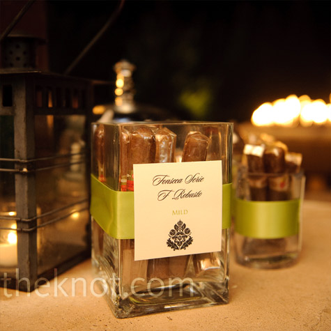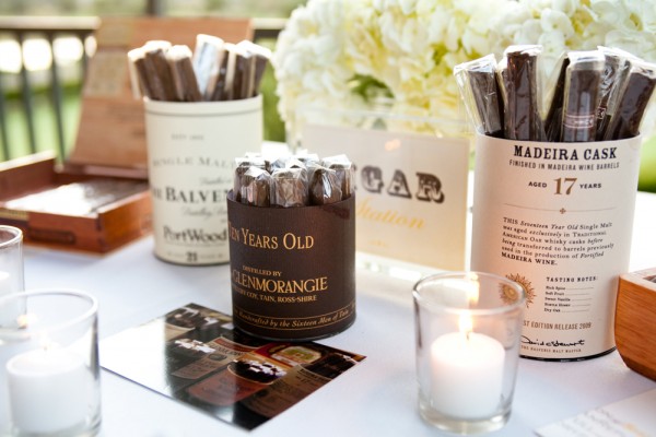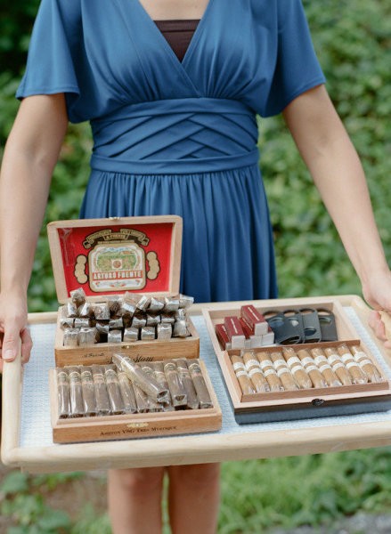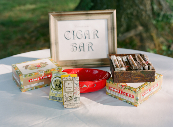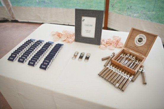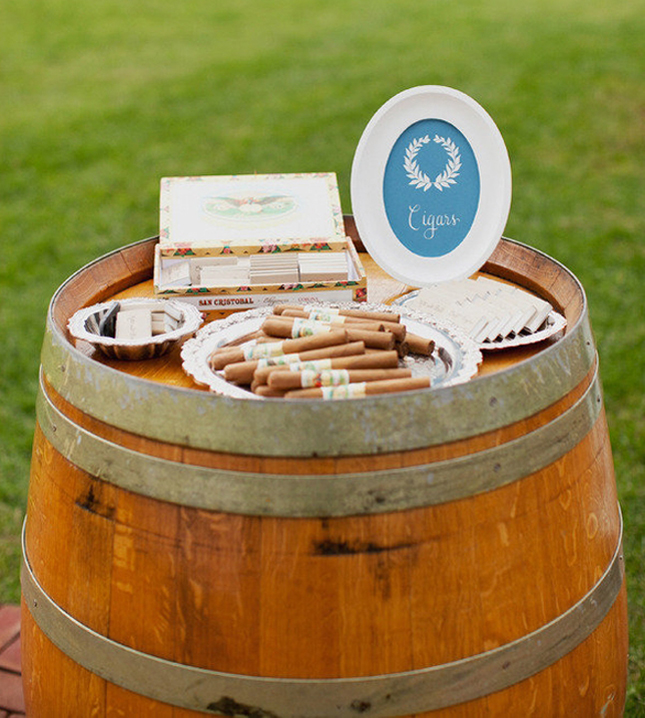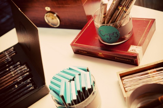 Gracias a la boda de Paula conocí el » cigar corner» o lo que también llaman » cigar bar». Se trata de un carrito o una mesa donde poner los puros y los cigarros. Es una buena idea para que la decoración anime a los invitados a entablar conversación alrededor del carrito de los puros, y quien sabe, igual sale otra boda!