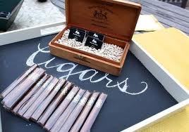 En el caso de que no haya «candy bar» en la boda, podéis poner en el «cigar bar» unos pequeños tarros con chuches para quitar el sabor de boca que te deja la nicotina. También podéis poner un «candy bar» interior junto a la pista de baile y otro pequeña mesa con golosinas junto al «cigar bar» para que los fumadores más golosos puedan endulzarse.