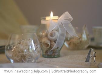 Como material para este tipo de bodas os recomiendo: arena, conchas, caracolas, estrellas, botellas de vidrio ( como mensaje en una botella), cuerda de amarre, anclas, el color azul marino, el azul turquesa, piedras de playa, madera encontrada en la playa….