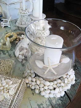 Podéis decorarlo en tonos azules y blancos que inspiran la playa, el mar…. y además poner conchas, estrellas, caracolas,…incluso arena!