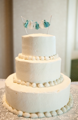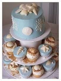 El pastel de boda con inspiración playera. Si no os gusta demasiado recargado podéis poner unas pequeñas conchas de fondant decorando la tarta.