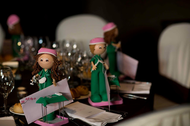A los invitados les regalaron un montón de cosas. Nada mas llegar al hotel en cada habitación se encontraron una botella de vino con una nota dando las gracias por compartir ese día con los novios. A las amigas del trabajo de Alba ( es enfermera) les dejó una fofucha personalizada, a sus compañeras de la universidad un marco con una foto suya, a algunas parejas tazas que ponía «Sois los siguientes», a las embarazadas unos baberos hechos a mano…