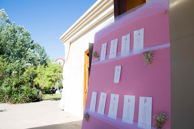 El seating fue personalizado ya que cada mesa era una letra y todas las letras juntas formaban «ALBA Y JOSEP»