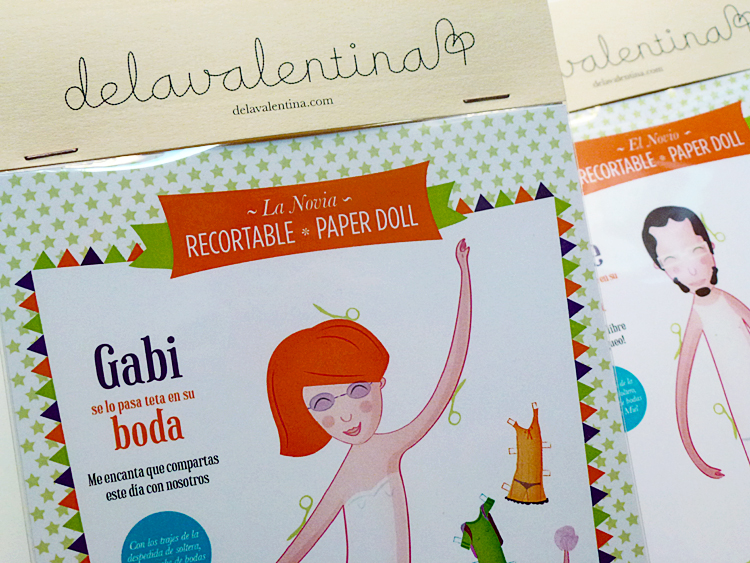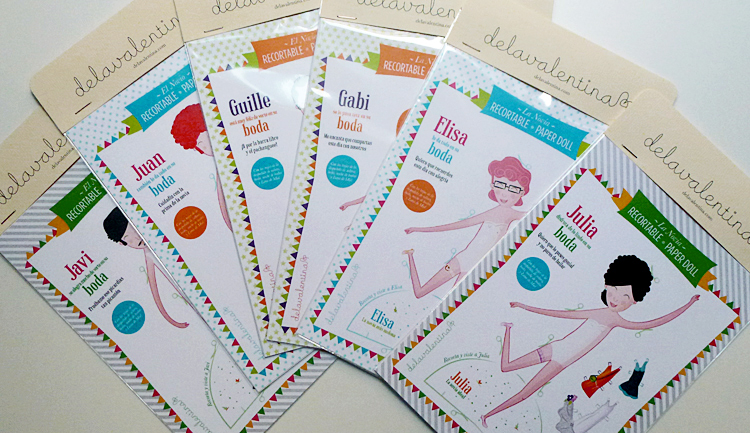 Comenzó con las colecciones, Marujas, Modernas y Happis, después los Cocinillas y La colección Perruna. Estos productos los vende en tiendas de toda España y en mercados y ferias de diseño independiente. Pero quería darle una vuelta al producto y enfocarlo a un público específico, diseñar para eventos especiales. Entonces surgieron los novios recortables. Pensando en todas esas parejas casaderas de entre 30 y 40 años. Es un producto muy reconocido por gente entre esta franja de edad, y además, tanto a niños como a adultos les encanta. Le pareció un regalo muy original y diferente para regalar a los invitados, para causar sensación vaya!. Además sigue la filosofía Delavalentina, originalidad en un clásico como son los recortables.