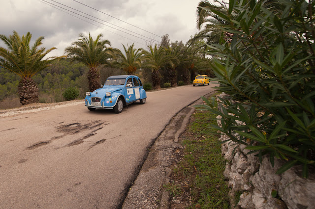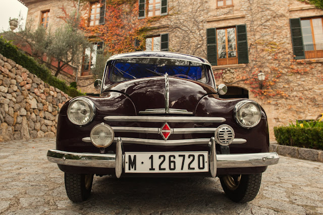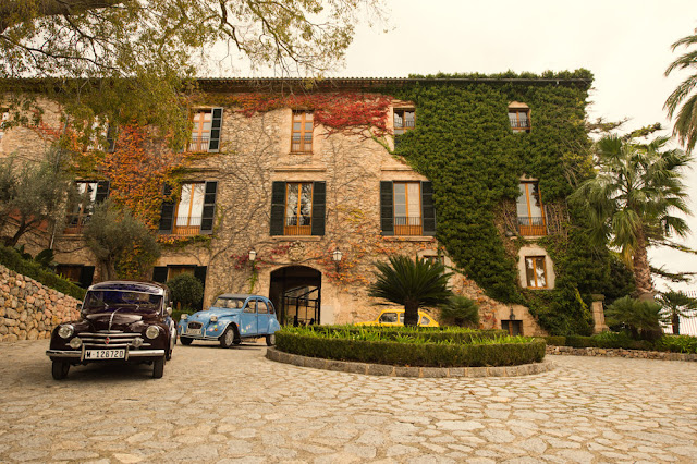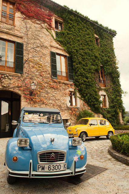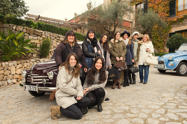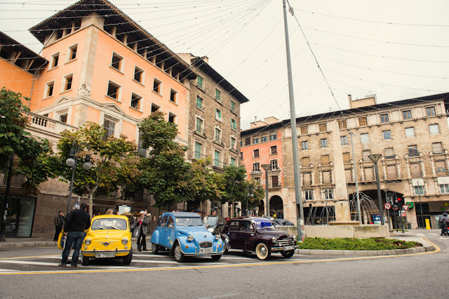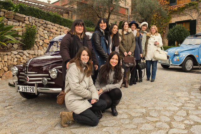 3 coches antiguos de diferentes colores de la empresa LIMOS , listos para llevarnos al centro de Palma. No podíamos estar más alucinadas!