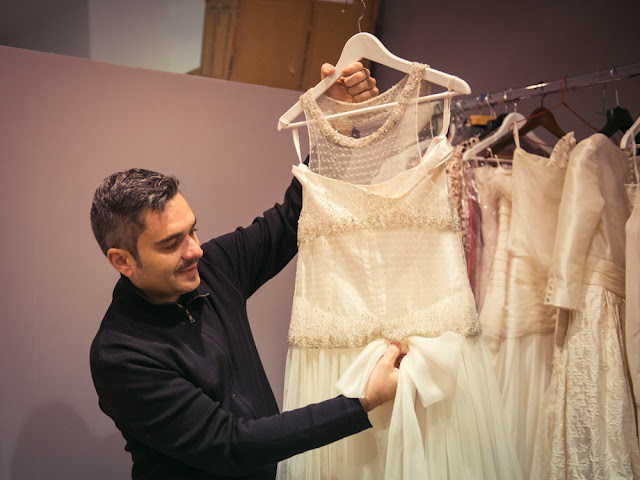 Sus diseños son únicos, porque los crea para cada mujer exclusivamente, y aunque penséis que como son vestidos a medida son más caros que uno comprado en tienda, os equivocáis completamente. Los vestidos de Miguel Ángel cuestan casi igual que un vestido hecho en serie y que existen miles iguales en todo el mundo. A mi eso me sorprendió, porque yo también como vosotras pensaba que un vestido a medida sería carísimo y solo para muy poca gente que puede pagarlo, y cuando nos contó los precios de sus vestidos me quedé boquiabierta, porque la calidad de los tejidos y el trato, nada tiene que ver con las firmas en cadena que conocemos.