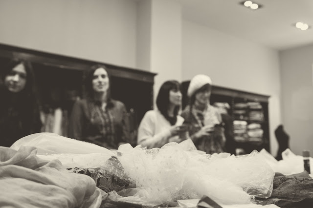 Antes de enseñarnos sus vestidos nos hizo una breve charla de los tejidos, puntillas…que usa para sus diseños. Pudimos tocar de primera mano y diferenciar entre el tul que se usa para los vestidos en serie y el tul que usa Miguel Ángel para sus vestidos. Os aseguro que nada tiene que ver, ya solo por el peso y vuelo..cambia del cielo a la tierra.