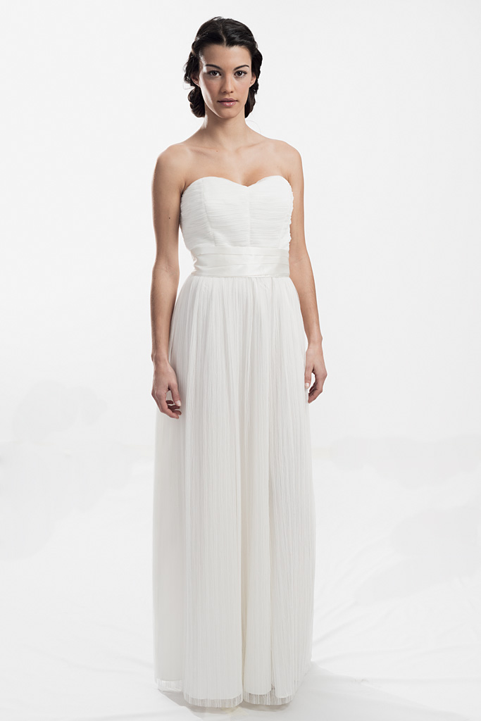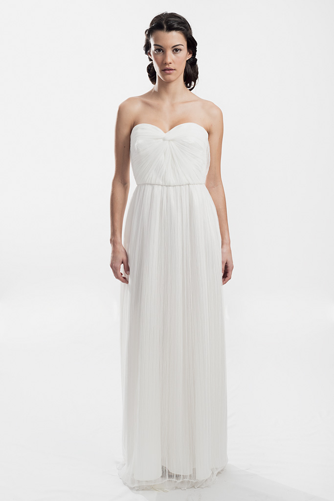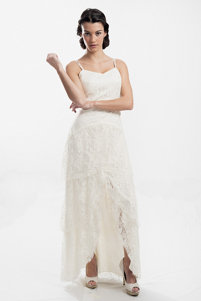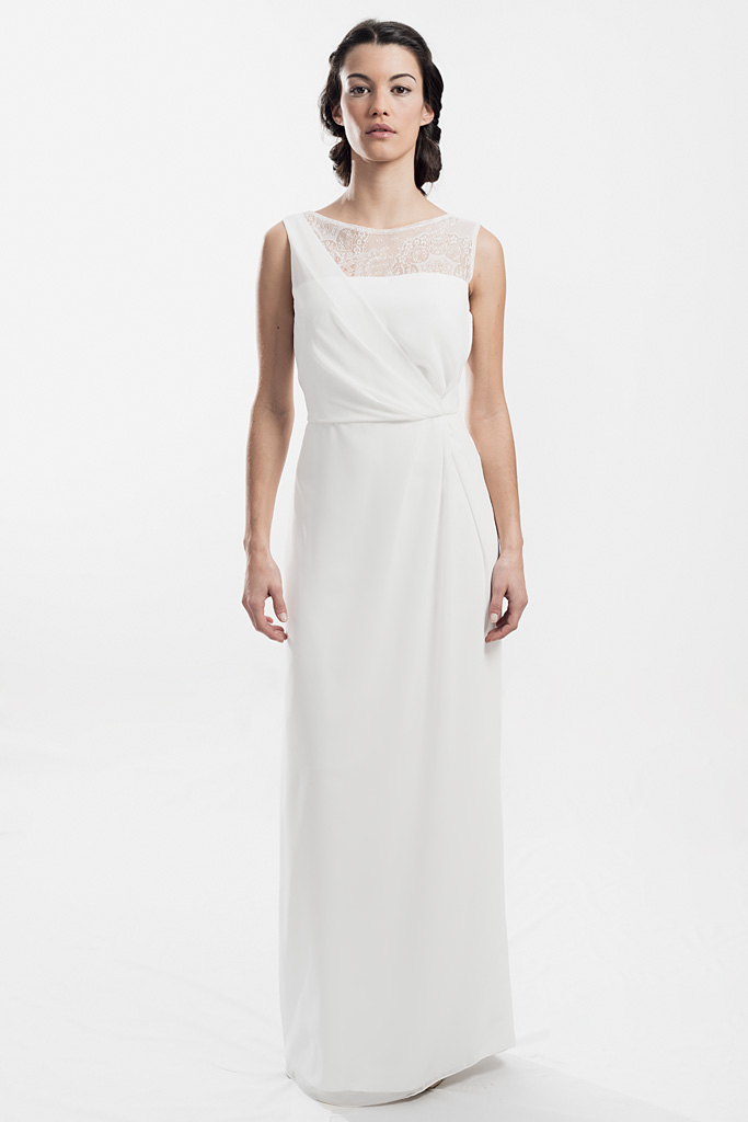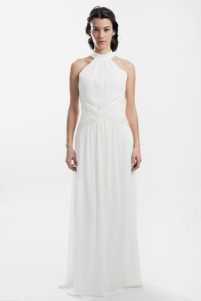 Blancos puros, blancos rotos, cremas y colores nudes son los protagonistas de esta colección 2014. Colores que están perfectamente combinados con tejidos de tul y gasas que dan aires etéreos y sobrios, con tafetanes que aportan volumen, personalidad y sensualidad, o con encajes que transmiten delicadeza y sofisticación.