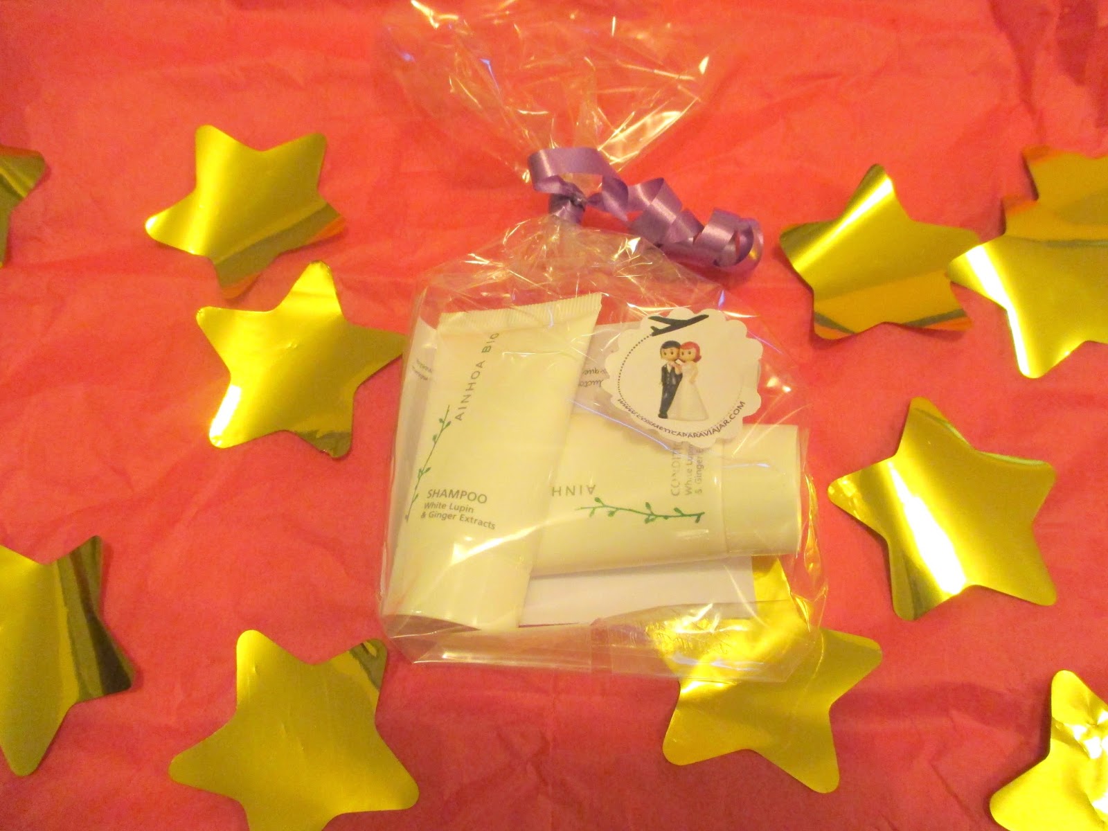 Champú y gel de Cosmética para viajar. Un ejemplo de Regalos para Bodas de esta firma, especializada en seleccionar las mejores muestras de productos en formatos perfectos para llevar en tu Luna de Miel o cualquier otro viaje que tengas que realizar.