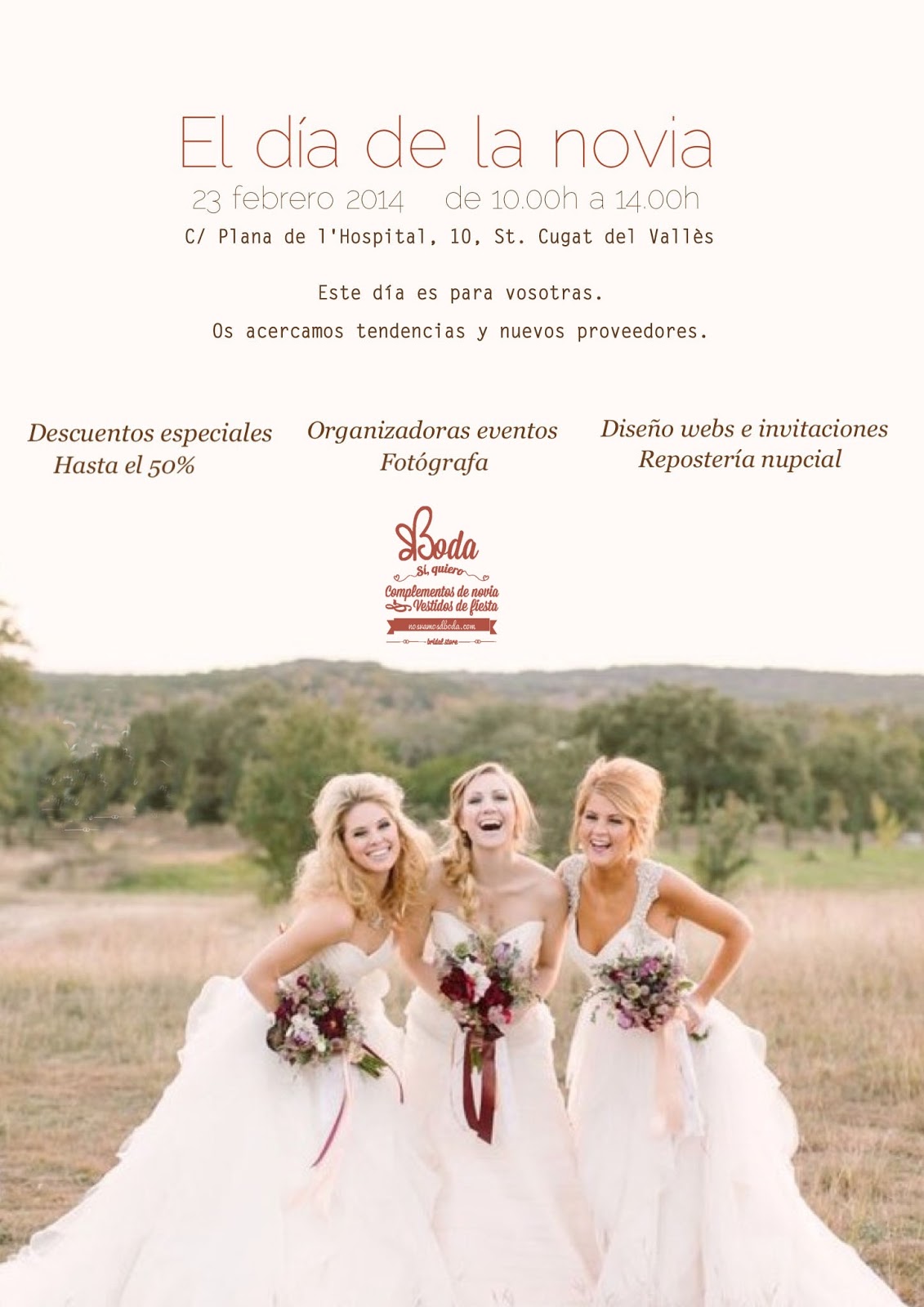 Así que, NOVIAS CATALANAS, apuntad en vuestra agenda el día 23, porqué os esperan un montón de descuentos.