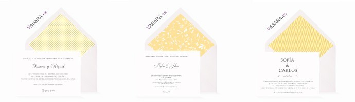 Si por el contrario lo que buscáis es una invitación más clásica, podéis optar por los modelos sencillos con sobres con forro de colores, para dar un toque diferente a vuestra invitación y que sea única.