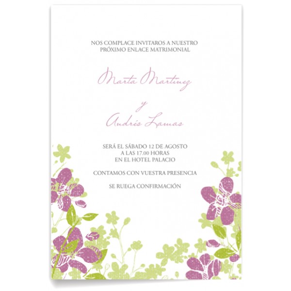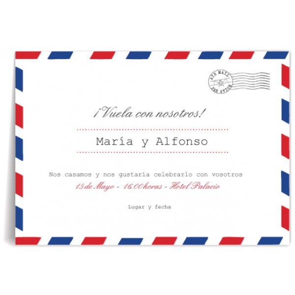 Son invitaciones de tamaño A5, de papel blanco verjurado y gramaje de 220 gramos. Hay varios tipos de sobre que pueden escoger de tamaño C5:
