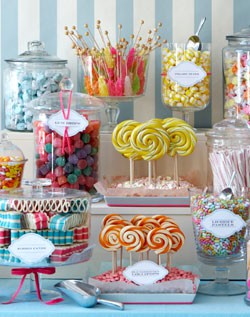 Algunos salones ya ofrecen este servicio, pero si quieres personalizar tu boda y quieres hacerlo tu mismo solo tienes que coger un par de ideas de las siguientes imágenes y puedes crear tu propio » Candy bar».