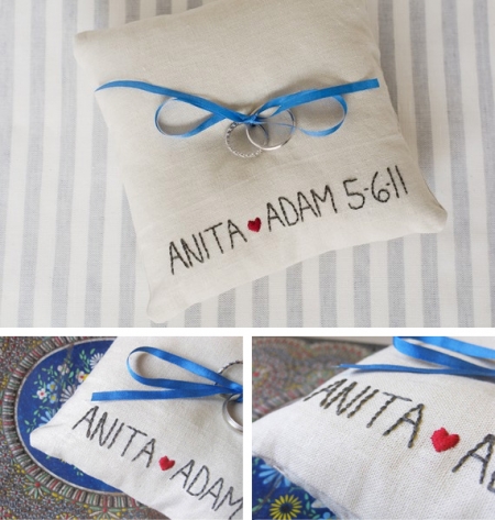 Hoy os traigo de nuevo cojines para alianzas de boda. Como ya os dije, hay infinidad de modelos y formas para poder llevar las alianzas. Estos me han parecido muy originales. Espero que os sirva alguna idea.