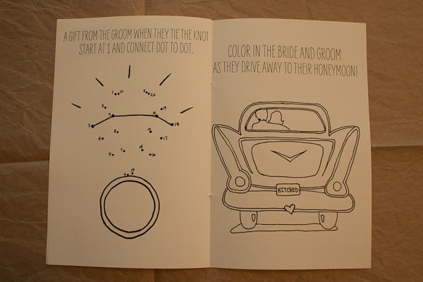 Una buena idea es dejar en la mesa de los niños y de forma individual un pequeño librito para que puedan colorear, eso les mantedrá mucho rato entretenidos. Aquí os dejo un ejemplo pero podéis hacerlo vosotros mismos de forma sencilla, en internet encontraréis un montón de dibujos que podéis imprimir y unir con hilo y aguja o simplemente con grapas.