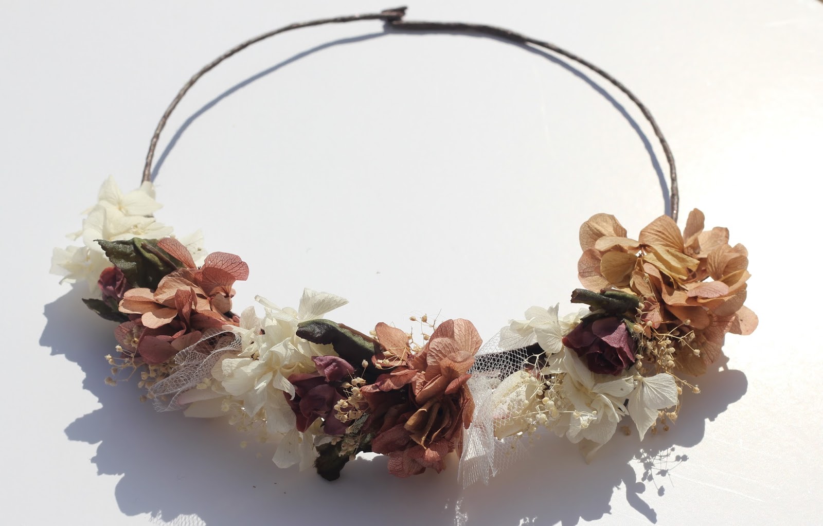 En SweetBohème trabajan con mucho detalle las flores combinando principalmente flores secas con flores preservadas y telas consiguiendo así un resultado totalmente perenne en el tiempo. El resultado son coronas y complementos con aire romántico y bucólico, además de femenino, natural y favorecedor.
