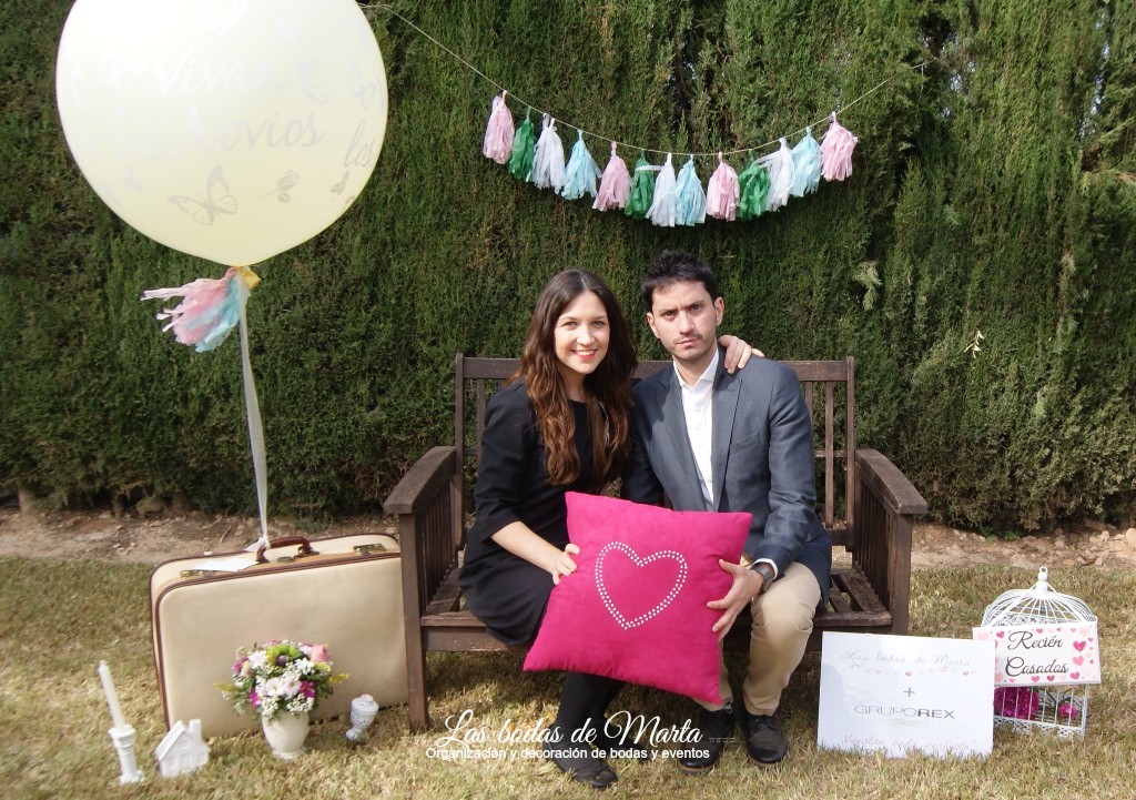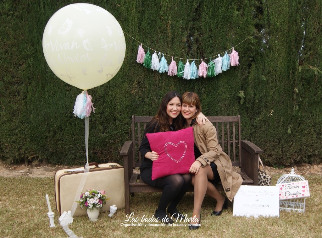 Me encantan los globos de la empresa»GERONIMO» Últimamente los veo en muchas bodas extranjeras, y la verdad es que es acierto, porque es un detalle que llena muchísimo y se puede usar para decorar casi cualquier rincón de una boda o cualquier otro evento. La única pega, por sacarle alguna, es que son algo caros, y uno solo, sino vais a decorar nada más, puede quedar algo soso.Hace dos semanas participé en el open day de Grupo Rex y uno de los rincones de mi stand era este photobooth. Mi idea era que todas las parejas que pasaran por nuestro stand se llevaran una foto de recuerdo, y para ello preparamos este pequeño rincón, en el que el centro de atención era este gran «geronimo balloon»Queda mucho más bonito si le das más cuerda, pero por desgracia, si lo dejábamos más largo no salía en ninguna foto, así que lo acortamos para que saliera en todas y cada una de las fotos. Es algo transparente y no se aprecia pero lleva escrito «Viva los novios» perfecto para la ocasión.Estas son algunas de las más de 80 fotos que tomamos ese día en nuestro photobooth. A los novios les gustó mucho la idea.