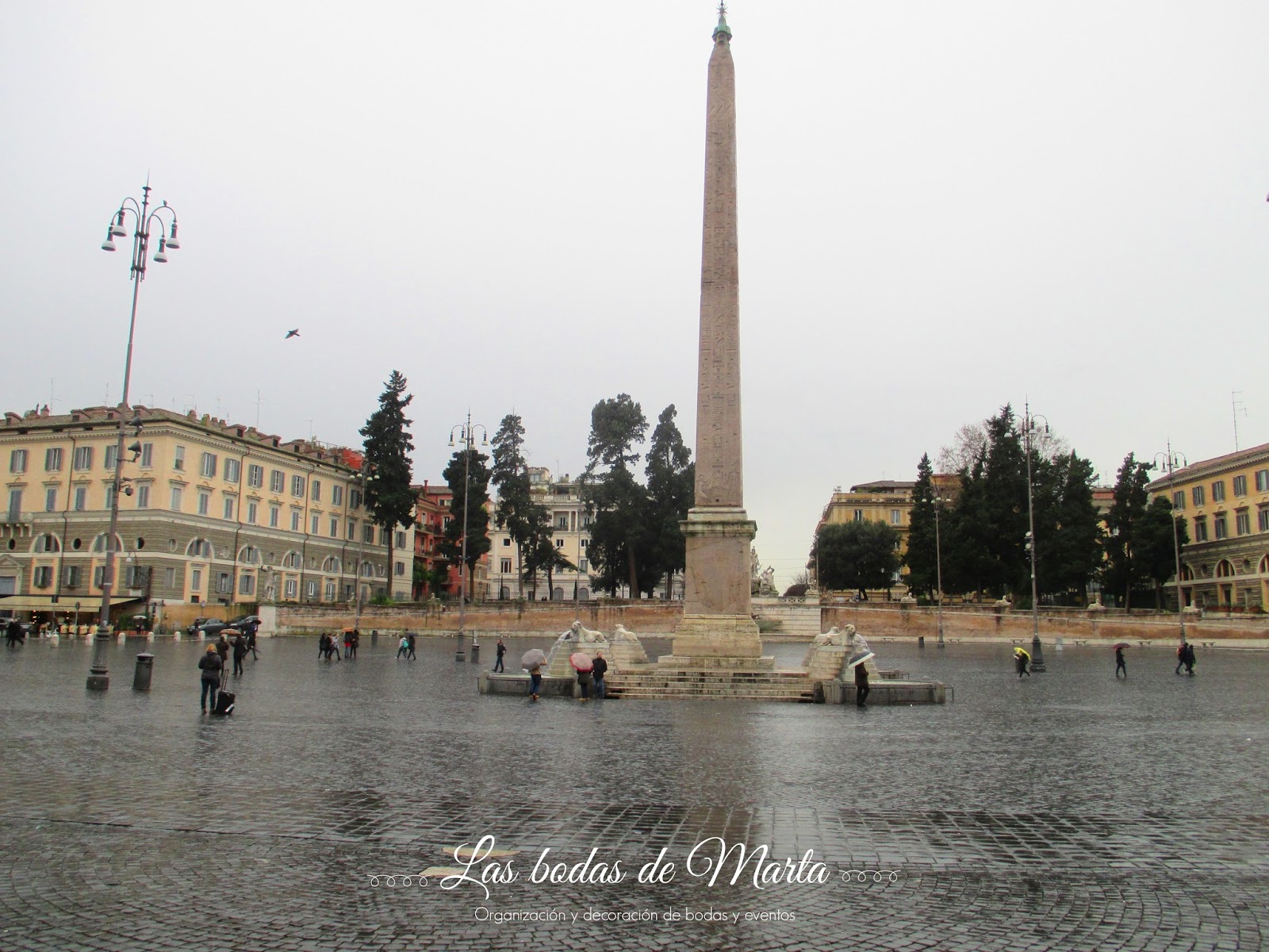 La primera de las paradas fue PIAZZA DEL POPOLO. Está a tan solo 5 minutos andando del hotel y es una plaza preciosa, con una obelisco en el centro rodeado de cuatro leones. Como estaba chispeando no había mucha gente en la plaza, así que pudimos tomar unas fotos muy bonitas.