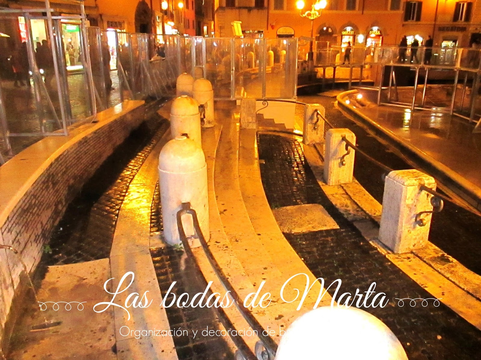 Después de descansar un ratito, salimos del hotel para dar un paseo y cenar algo. Bajamos por Vía di Propaganda hasta llegar a Vía Del Tritone. Seguimos por Vía Poli y llegamos a la FONTANA DI TREVI, donde pudimos admirar parte de la belleza de esta plaza/fuente. Y digo esto porque la están restaurando, y aunque puedes admirar la fuente desde otra perspectiva. La Fontana está cubierta por redes y por andamios, con una pasarela en el centro para que los turistas puedan pasar y ver como progresa la restauración. A pesar de que no hay agua nosotros cumplimos con la tradición y lanzamos nuestra monedita.
