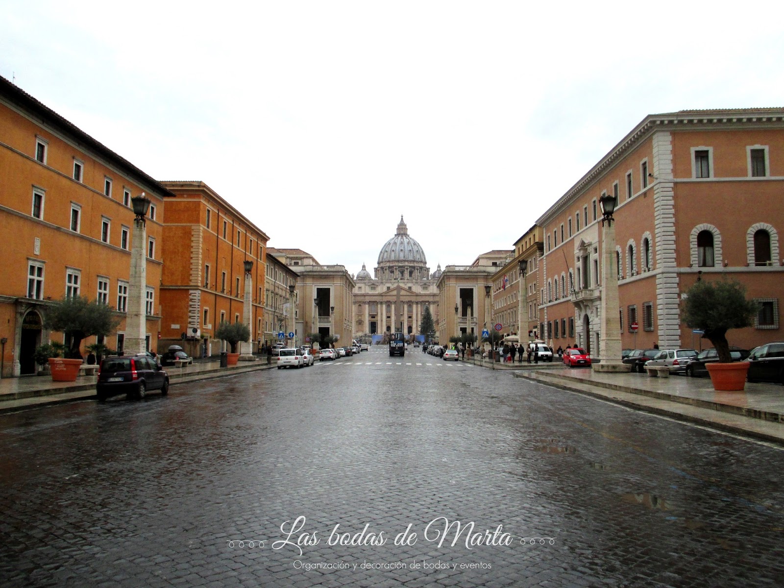 Seguimos caminando por Vía Cola di Rienzo hasta llegar a Piazza del Risorgimento, donde se pueden admirar las murallas del Vaticano.Para llegar a la Piazza di San Pietro tuvimos que andar un poquito más. Seguimos caminando por Vía de Marcherino hasta que cruzamos una de las murallas que rodea la ciudad del Vaticano y llegamos a la PLAZA DE SAN PEDRO.