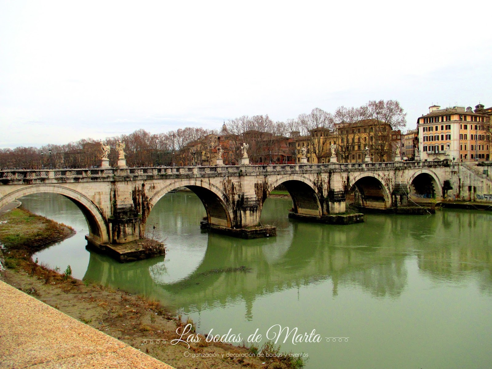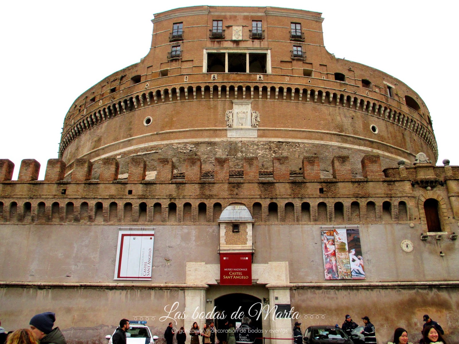 Finalmente no hicimos la visita del Castillo de San Ángelo, creo que cuesta 7 euros, pero por fuera es un edificio muy bonito. Una de las mejores fotos la puedes hacer desde el puente que cruza el río Tiber y entra en el Castillo. Cruzamos el puente de San Ángelo donde pudimos admirar las preciosas esculturas que hay en los laterales.