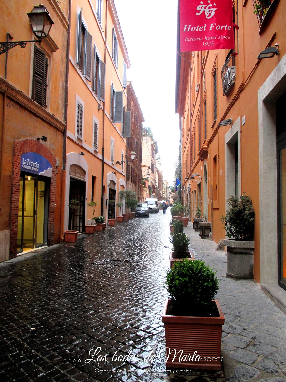 Salimos de esta maravilla y continuamos por la Vía Delle Carrozze, calle donde se encuentran muchas de las grandes firmas de lujo. Lo bonito de esta calle y las de alrededor no es solo poder comprar, sino que son calles llenas de vida, con muchos bares y restaurantes llenos de gente y con mucho ambiente. Es agradable pasear y callejear por Vía Condotti y las calles adyacentes. Llegamos a Plaza España y de ahí fuimos directos al hotel, que está en la calle de detrás. Eran las 17:00 h y necesitábamos descansar un ratito antes de seguir nuestra ruta.